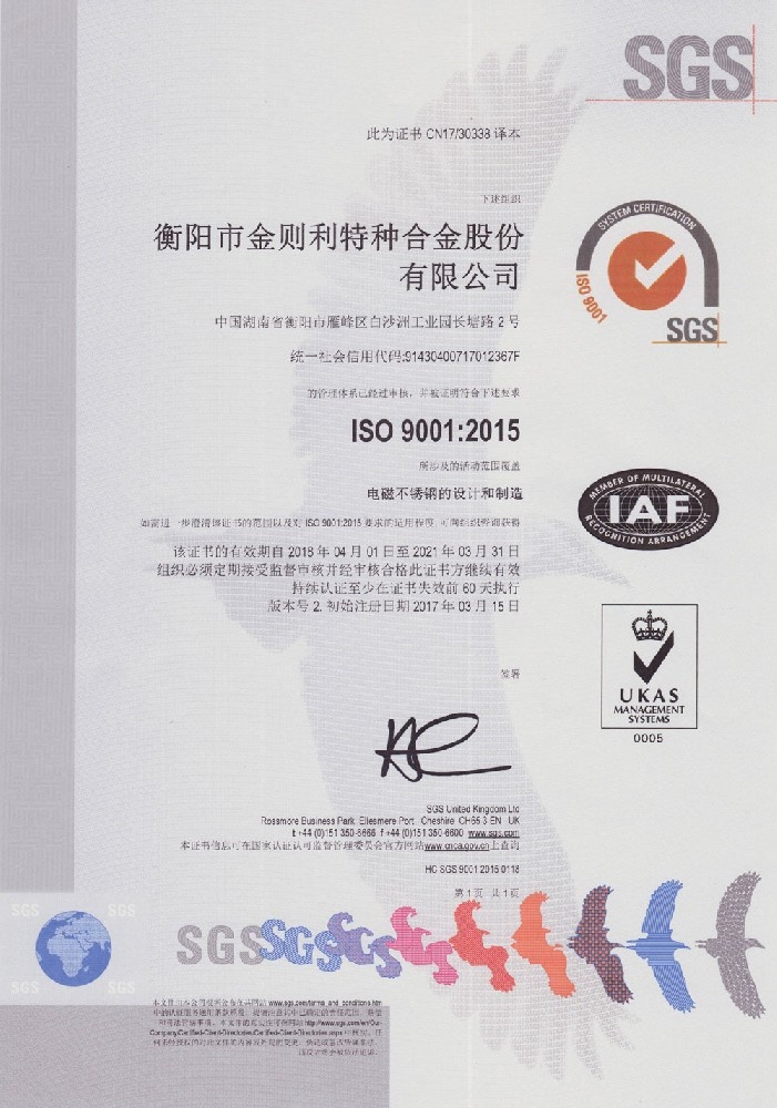 衡阳市金则利特种合金股份有限公司成立于一九九九年十二月,注册资本人民币两千两百万元。注册地址:衡阳市雁峰区白沙洲工业园长塘路2号。公司主营耐蚀软磁合金,为湖南省高新技术企业。公司自成立以来,即致力于耐蚀软磁合金的研发。 研制出的JL-31(00Cr13si2Pb)、JL-31B(00Cr13si2)、JL-31BS(00Cr13Si2S)、JL-37B(0Cr17Si2)、JL-37(0Cr17···